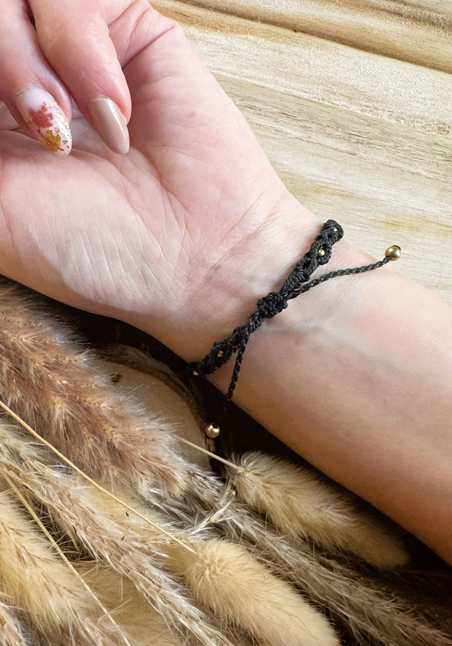 ✋ Créé à la main, le bracelet Solaire en micro-macramé fait partie de la collection Céleste.