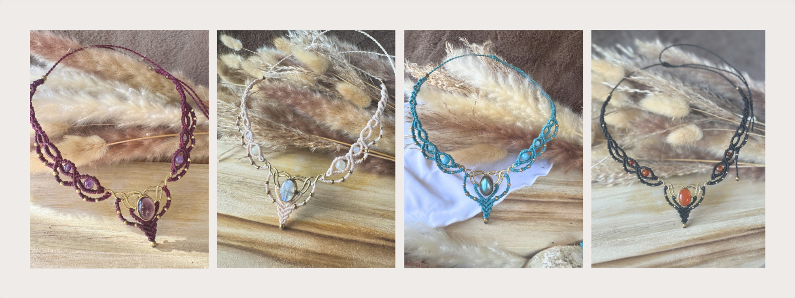Première collection de bijoux en micro-macramé et pierres naturelles, Céleste s’inspire du ciel, de ses reflets et de ses mystères.